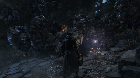 Up ahead is a locked door that you can use the iron key you found in the micolash s fight to open a shortcut back to his arena.
